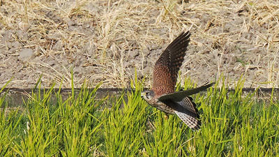 その内の一ヶ所では、田園に降りていたハイイロチュウヒを発見。