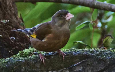 写真を見るとオオカワラヒワであった。その群れが他の群れと合流して、少し高い枝に行くと増えて、その数約30羽ほど。この時期高地で会えるのはほぼオオカワラヒワと見て良い。