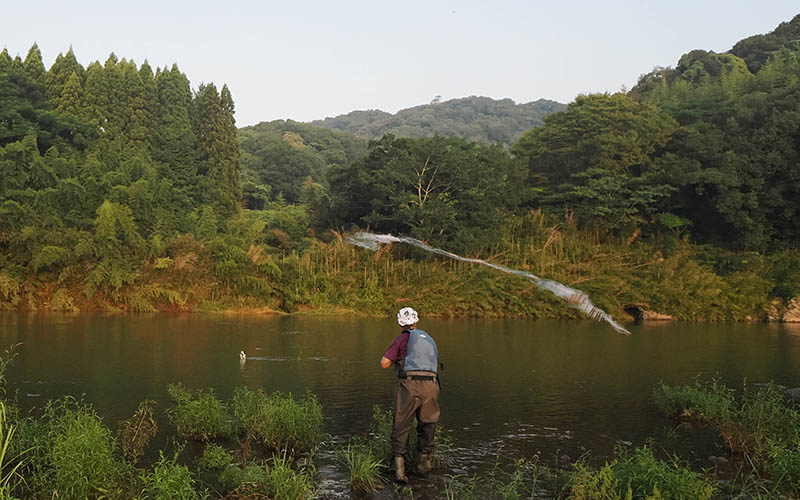 そんな小鷹網漁を大分の大野川で実際に見て、撮影をお願いし数投の小鷹網漁を写真に収める事が出来たのです。