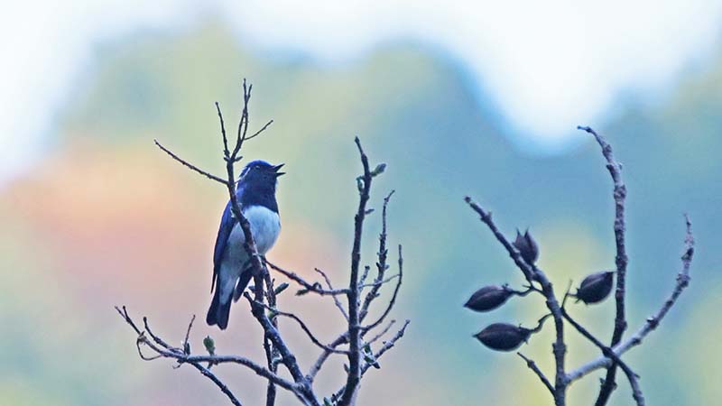 昨日、桜の木の場所で鳴いていたオオルリ(3羽目個体)が囀っている。