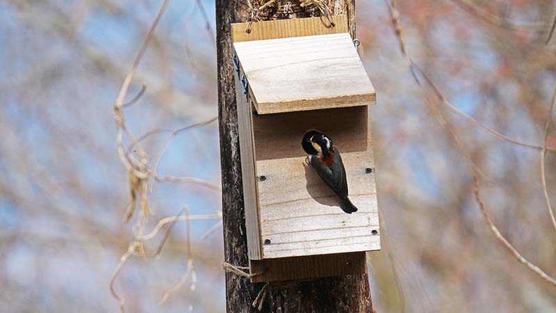 他の場所の巣箱はヤマガラが物色中