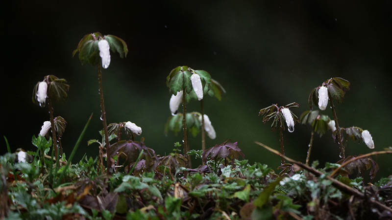 14時を回って雨は落ち続け、開かないユキワリイチゲ