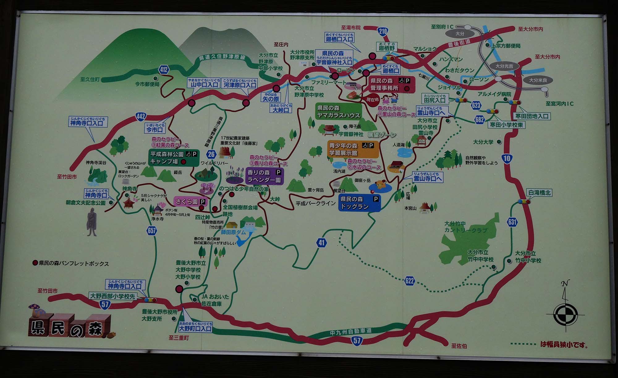 管理事務所に設置されている、県民の森周辺の新しい地図。