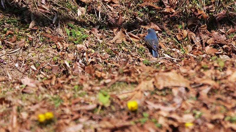 その♂が福寿草の傍へ舞い降りるので、思わぬコラボ撮影が出来たのです。