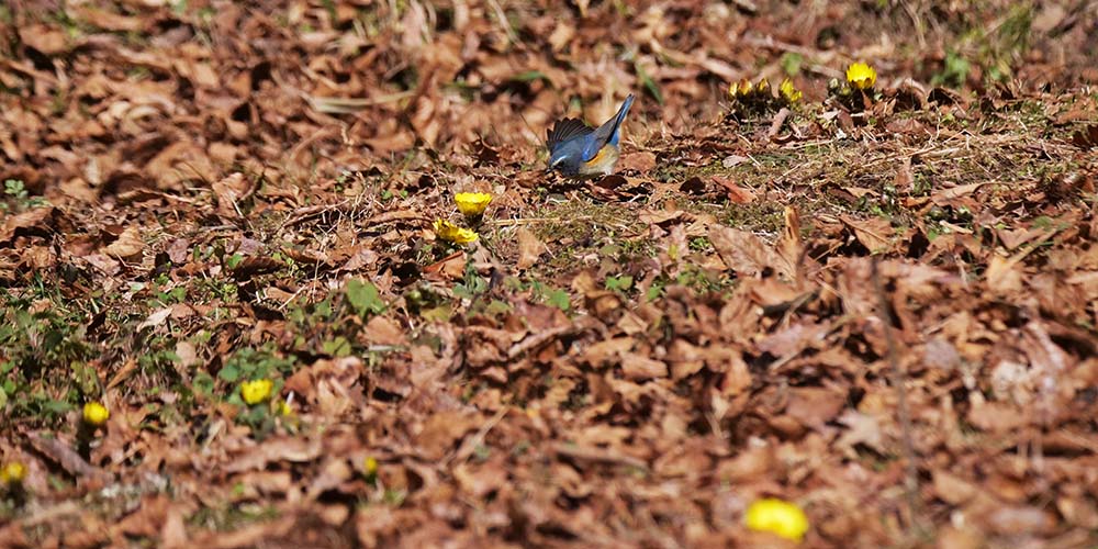 もしかしたら、福寿草・雪・ルリビタキの三つ巴コラボも期待できるかも?