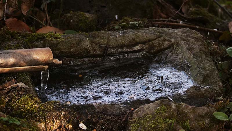 水場周辺は2月から、ストックしたハゼの実を補充していきます。
