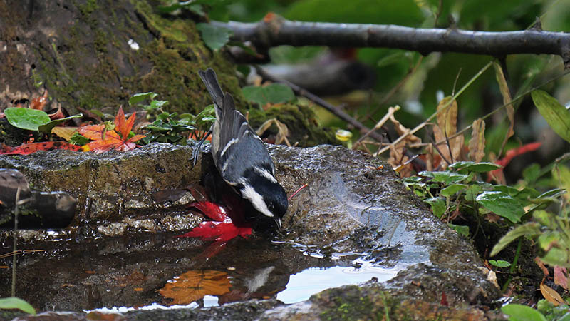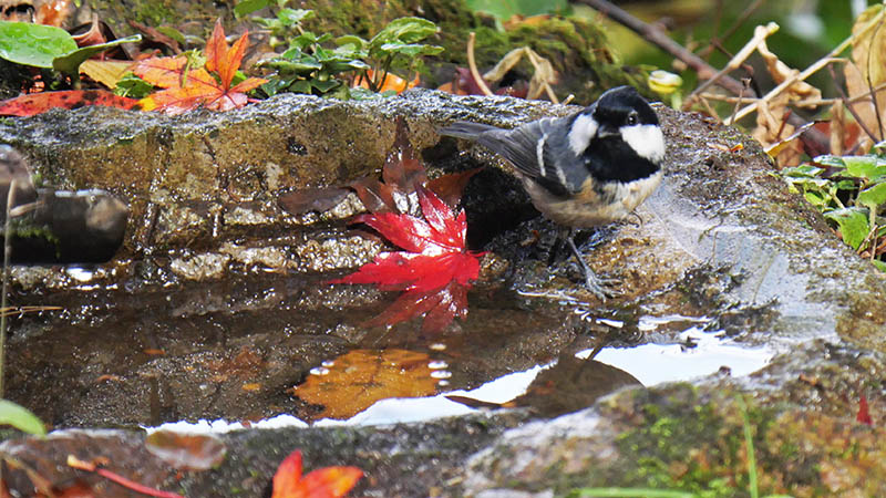 その小さなヒガラが、数日前から水場を利用し始めた。11月25日頃までは、水場で殆ど見かけなかったけど、寒くなって少し高い場所から降りてきたと判断。
