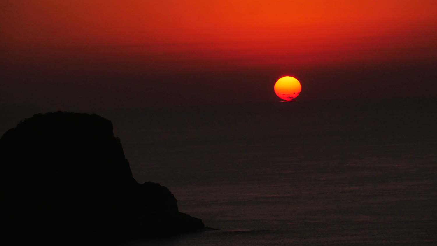 こんなクリアーな水平の海面からの日の出は初めて