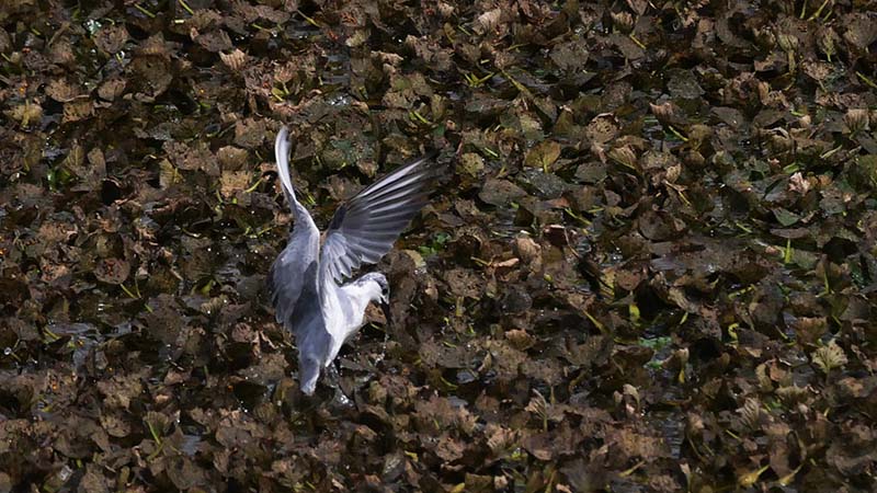 溜池に一羽が居て、水草の中に何度か突っ込んでいた。
