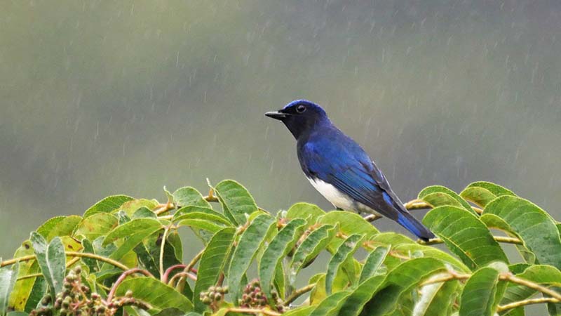 サメビタキ(夏鳥)決め手は目の後ろの骨格。コサメビタキの可能性も・・