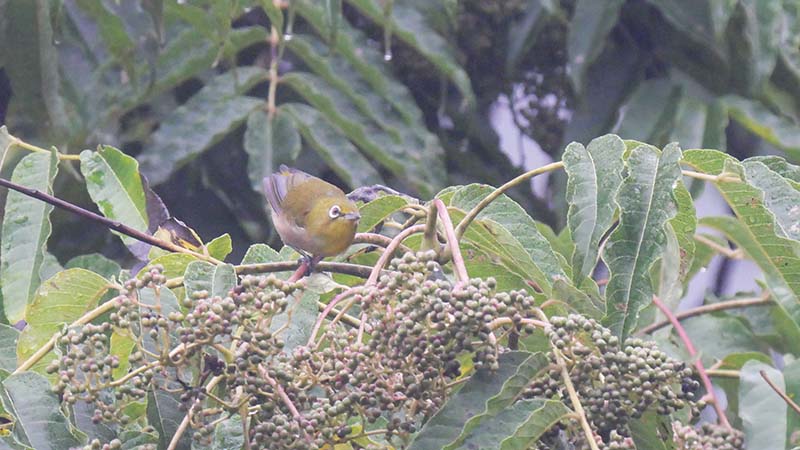 坊主山の水場に降りるアプローチの枝に、メジロじゃない鳥が来た。