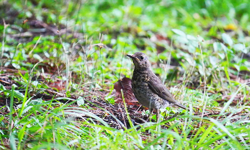 今年の県民の森はクロツグミが多く、宇曽山付近でも多くの鳴き声を確認しており、8月上旬には10羽近くの幼鳥、もしくは若が時々群れで動き回っていた。