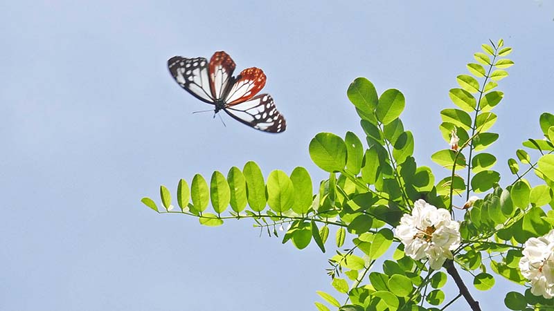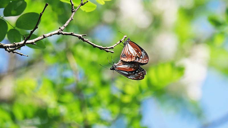 ジャコウアゲハ、2羽のセグロカッコウが鳴く場所で数頭