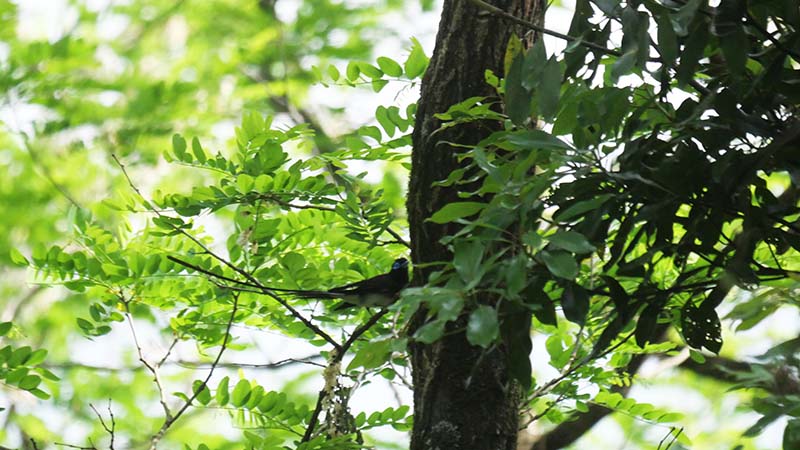 普通に見せるサンコウチョウの飛び方はヒラヒラです