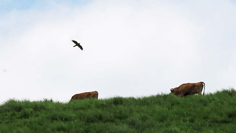 6月25日9時20分頃、情報を共有していたIさんがほぼ同じ場所を車で通過中、サンジャクらしき鳥を見たけど山中に逃げ込んだらしい。