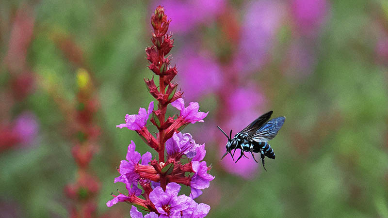 メハジキの群生地で、多くの蜂に交じって一匹のブルービーが居た。