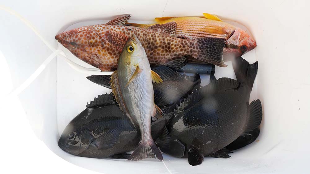 福住会長の本命魚グレと、イサキ・ヨコスジフエダイ・オオモンハタ