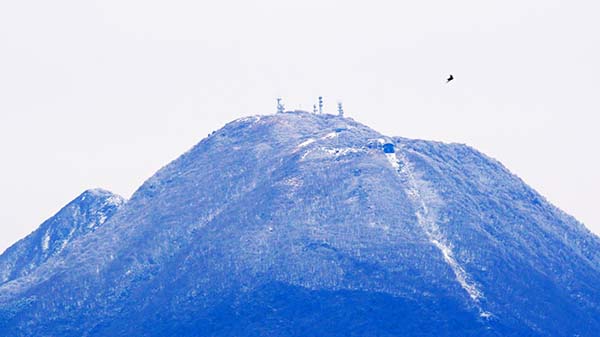 通常私たちが見る由布岳と鶴見岳の雪は、由布岳の方が圧倒的に多く積もっているのが当たり前。これは西高東低の気圧配置と寒気によるもので、今回はその反対の雪景色。この景色は中々お目にかかれないから私的には貴重な風景です。