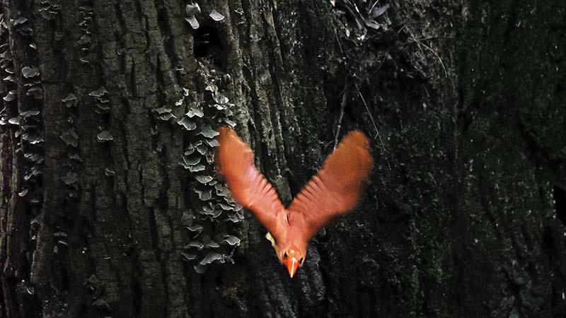 アカショウビンの子育てで、人との接触可能時間は一日3回数分のみ。