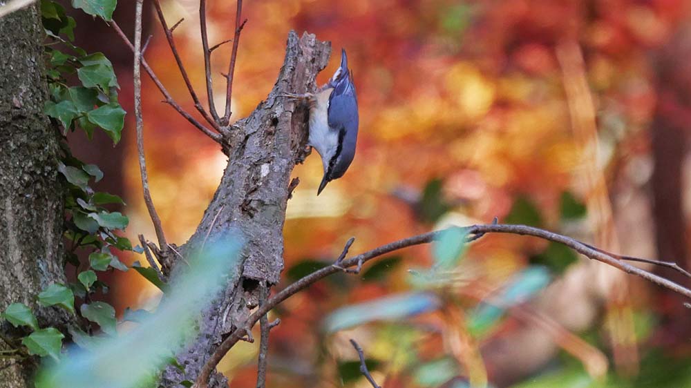 ハゼノキに来るルリビタキを、落ち葉のじゅうたんに寝て見るのも良い