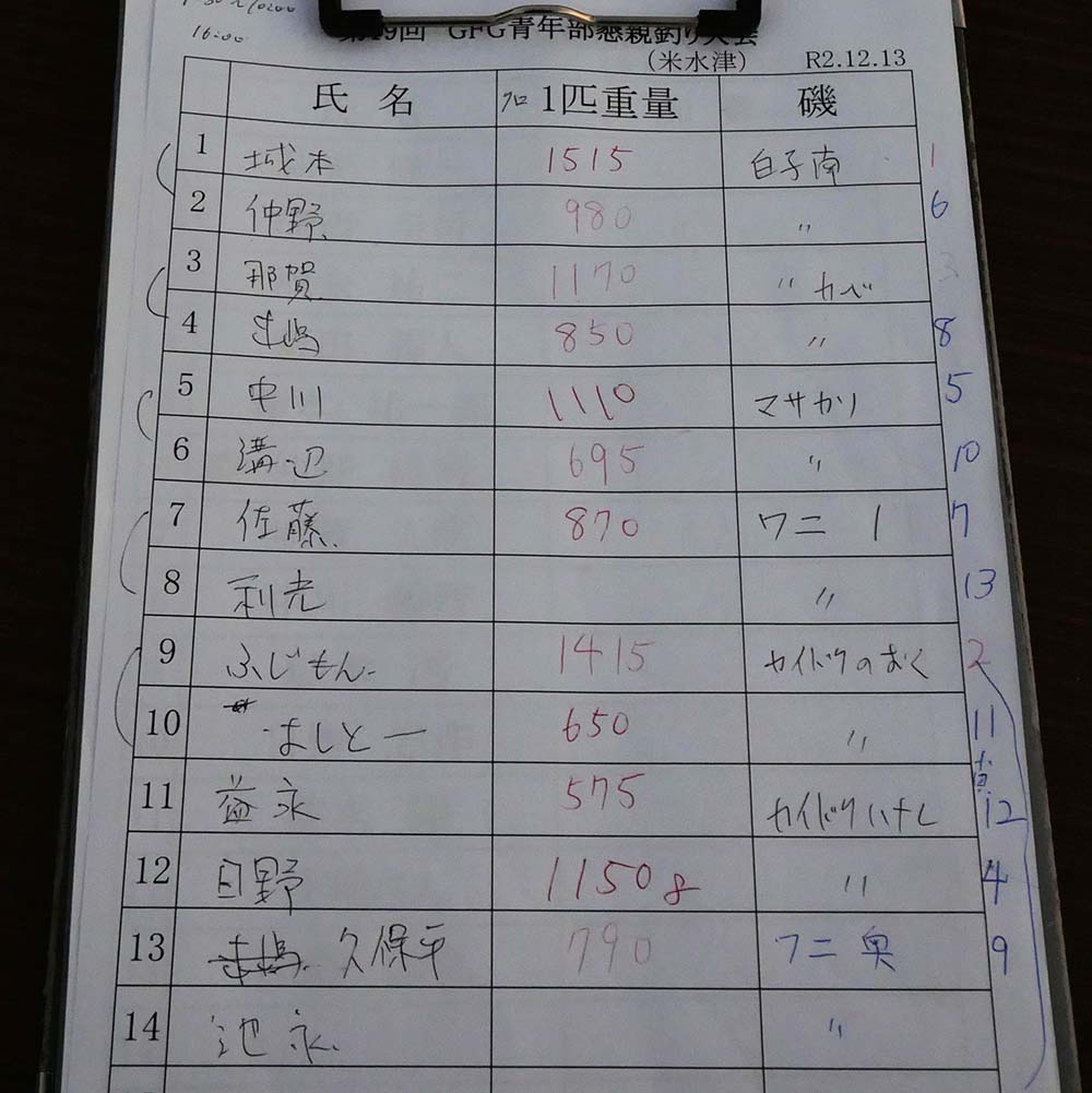 グレ1匹検量で審査ですが、準優勝と4位のグレがこの場所で出たのです。