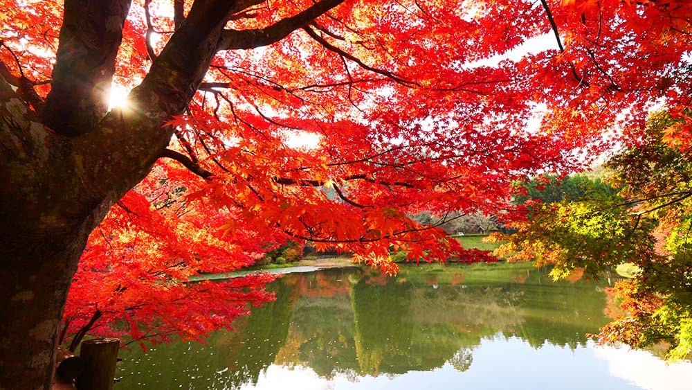 池の紅葉は終盤ですが、坊主山の紅葉は11月下旬まで。