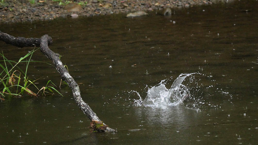 特にヤマセミは食事と水浴びがセットで、魚を丸呑みした後直ぐに水浴び。