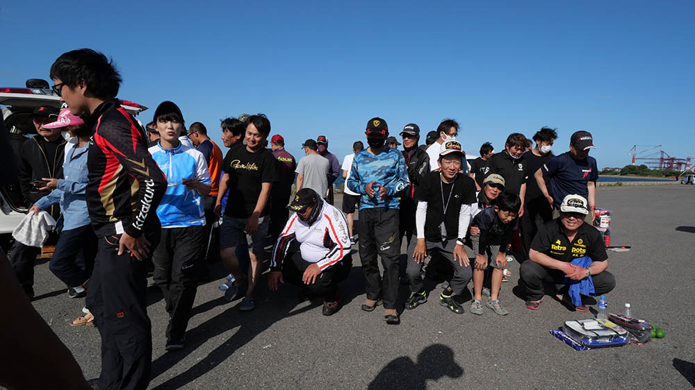 14時までの釣りが終わり、検量~表彰~抽選会~集合写真の撮影。