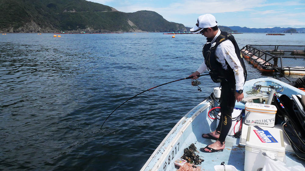 2018年の7月から仙崎の沖側並びの一番湾口に近い場所で水深40m近い所。