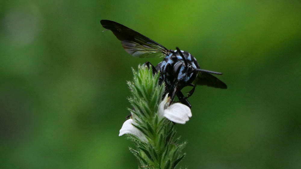 標準和名はルリモンハナバチ、蜜蜂大の大きさ