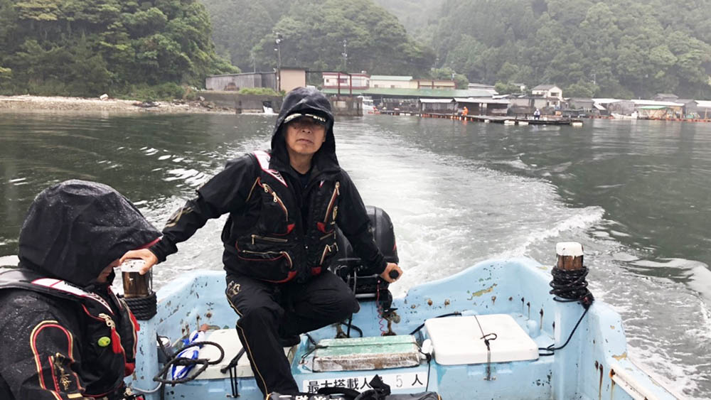 湾内は凪、沖は結構な波、船に強くなって楽しんでいる
