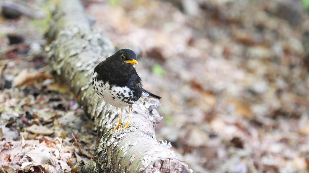 坊主山入り口の手前で、昨日確認したクロツグミを待つと来てくれました。今度は少し移動してアカハラを待っていると、またもクロツグミが来てくれました。撮影中は同一個体と思っていましたが、どうも2個体を写している様です。