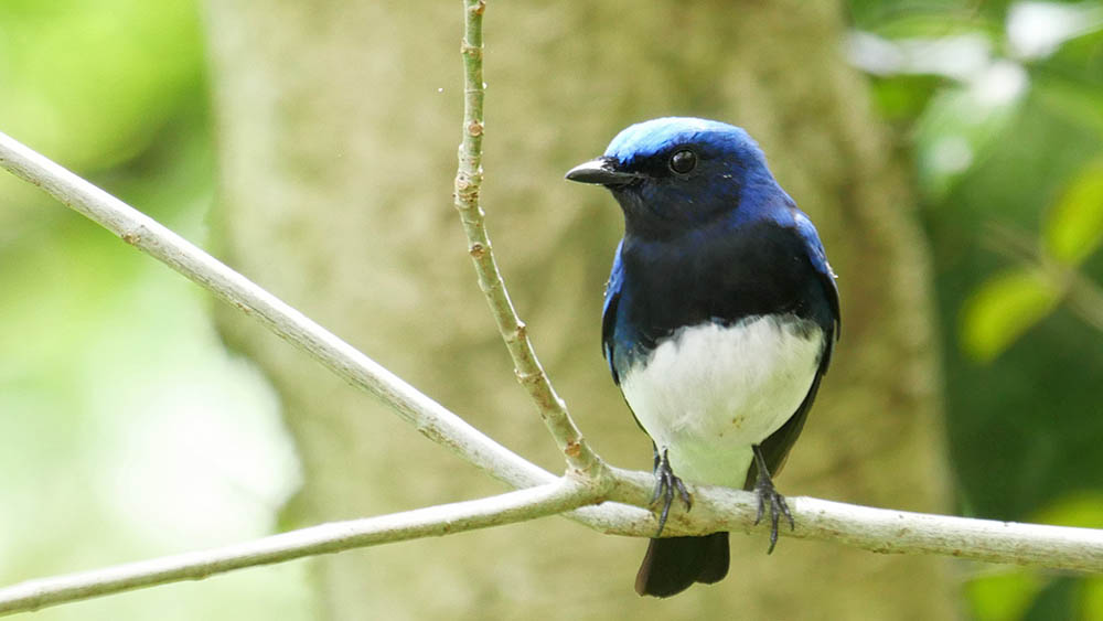 仲間が集合している坊主山では、到着個体のオオルリが直近まで偵察。