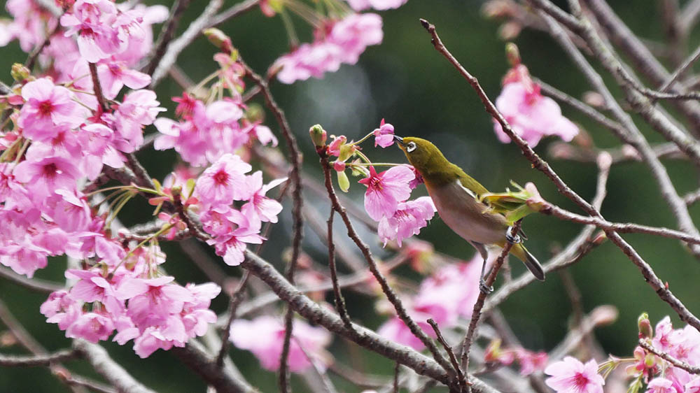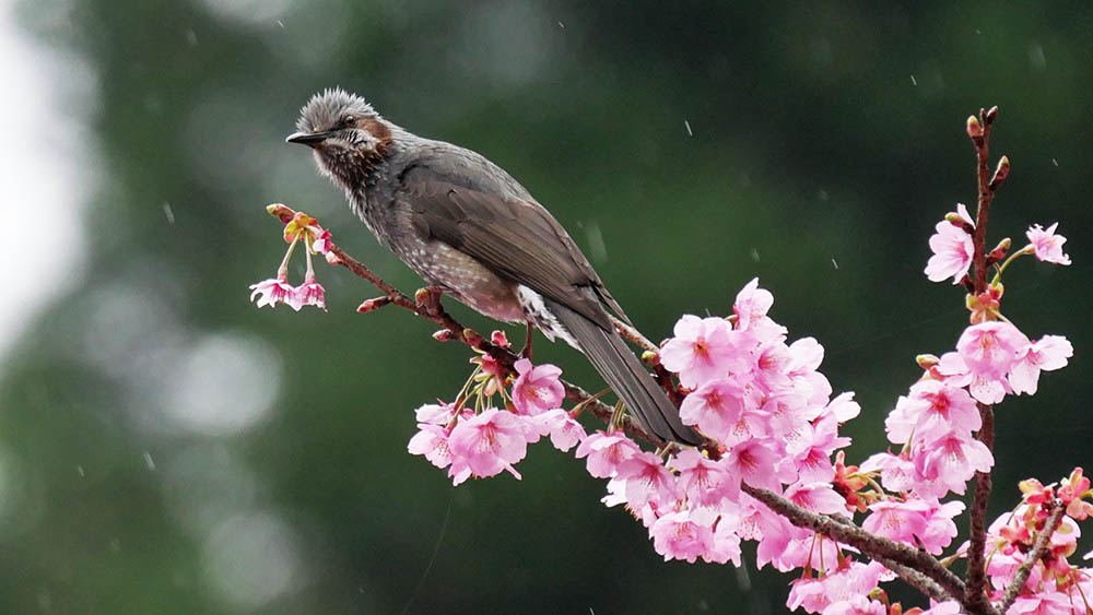 ガビチョウ、桜にはほとんど来ないのに超ラッキー