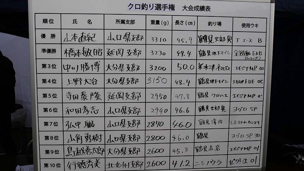 グレ2匹までの重量審査で10位までの方々、山口凄い