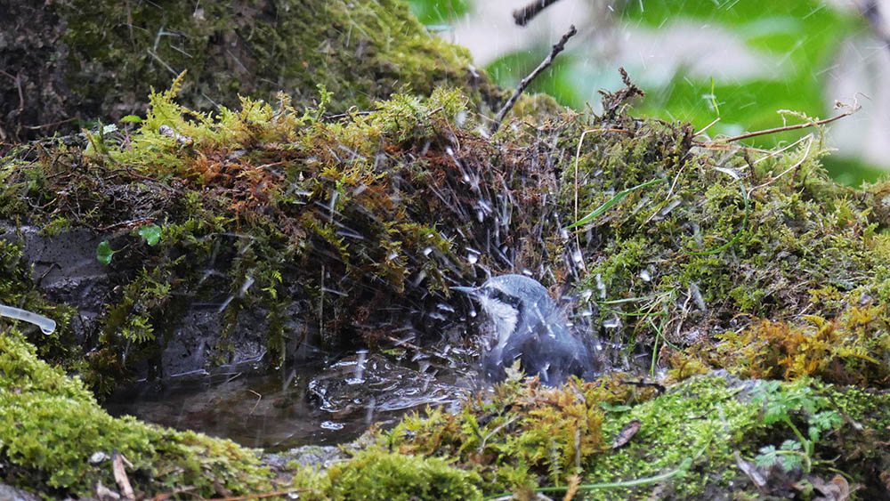 昨日いつもの様に見ていたら、ゴジュウカラが水浴びを始めてくれました。