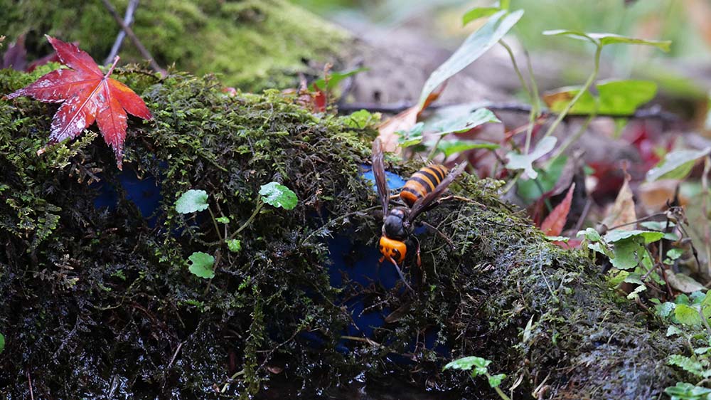 そして今回の写真はカケス・エナガ・ミソサザイ・ヒガラ・キクイタダキなど。小鳥ではないものの、オオスズメバチも水場の苔を吸ってくれました。
