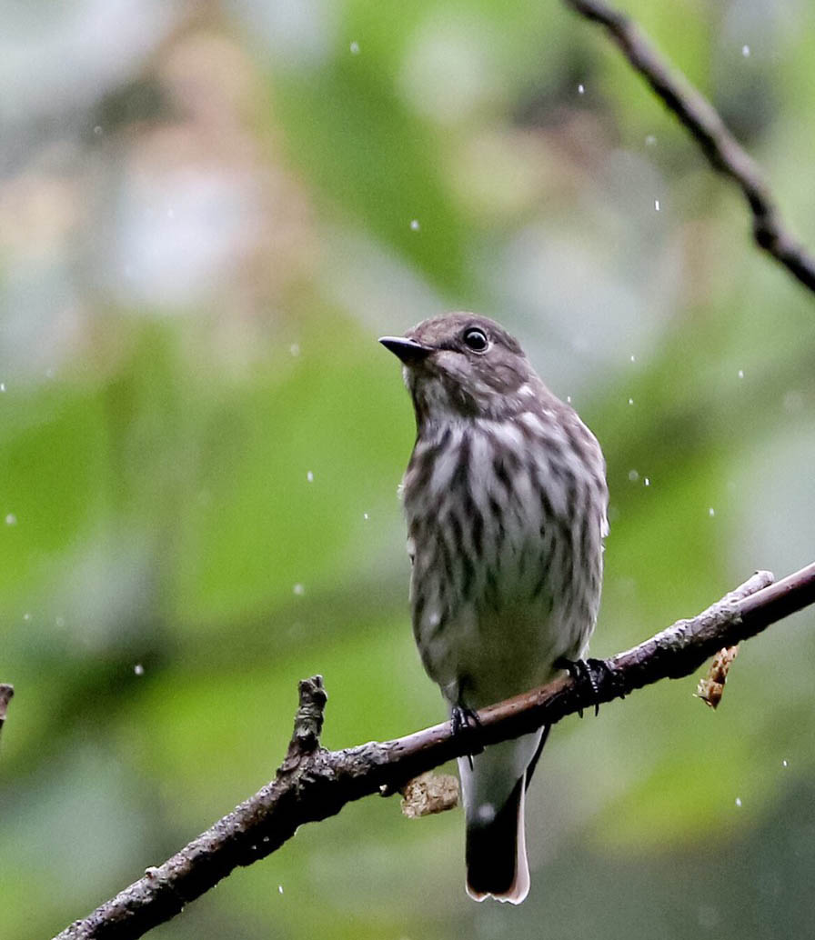 ミズキに入る小鳥は私たちに警戒することと、風や雨で動きも悪い。