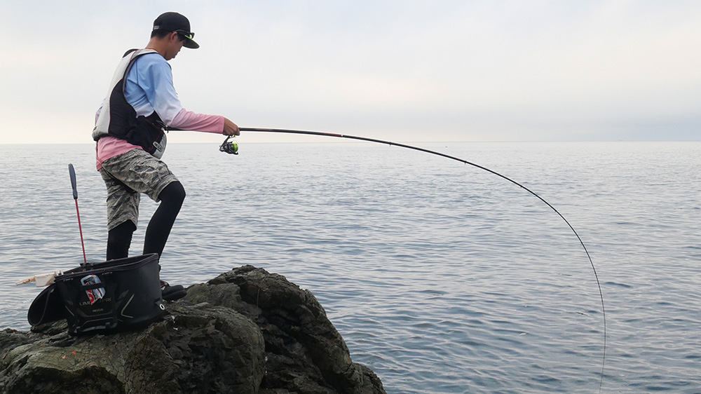 マキエ作りから30mほどの遠投で沖を釣る方法。