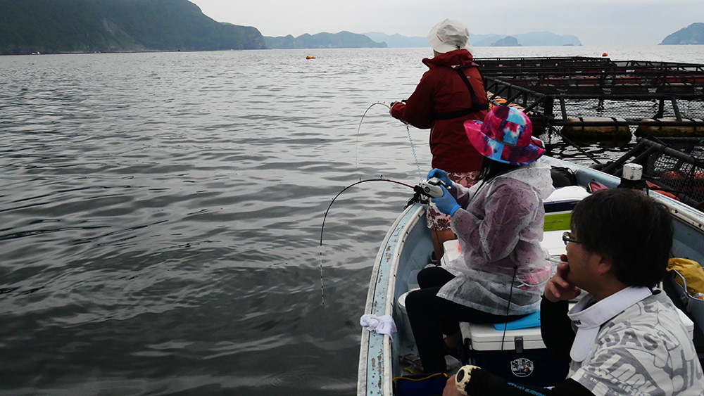 カラスガイのエサでハマチが踊り出るなど、筏釣りの奥深さを目の当たり。