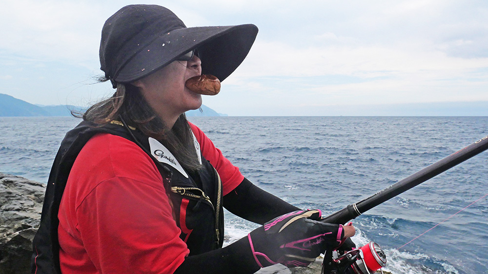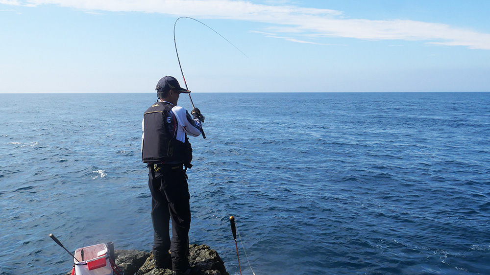 最後の最後に磯の割れ目で二人の元へは辿り着けません。しばらく待って声を掛けると二人とも驚いた様子。釣れていたのは未だマキエが効いていない時間帯なので、コッパグロに終始していましたが、帰港後の検量では結構な良型を揃えていましたよ。
