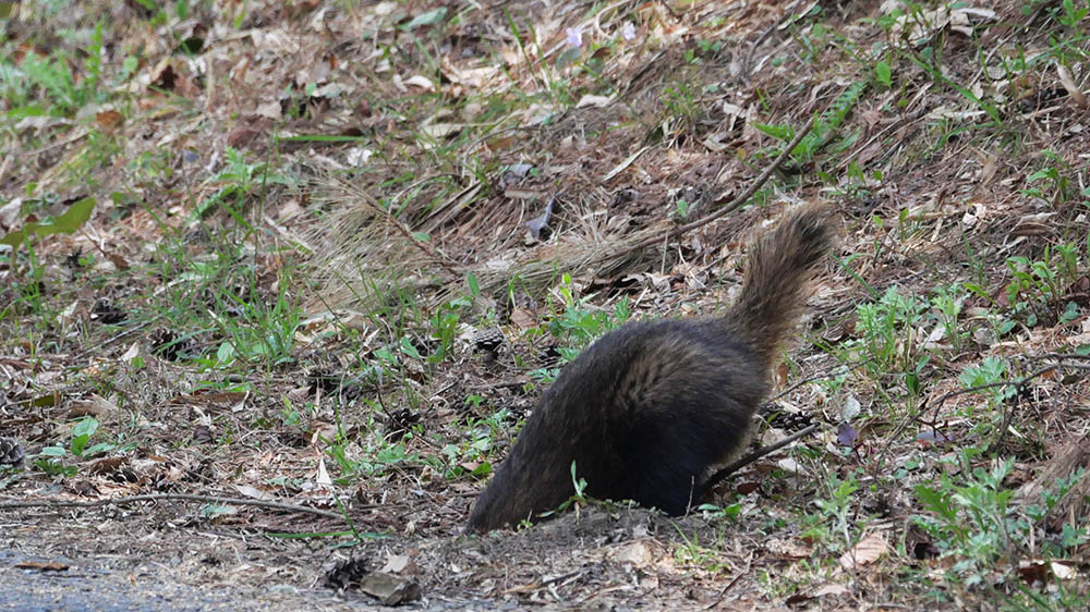 グセリながら時折地面に舞い降りて、木々から落ちた幼虫を捕食していました。