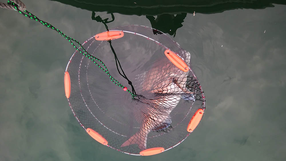 タモ入れを後回しにして、アオリイカが抱き着くか試したところ・・