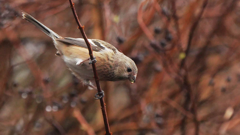 未確認の理由は♂若1羽と♀2羽で、♂の成鳥の綺麗な赤を撮れないから。