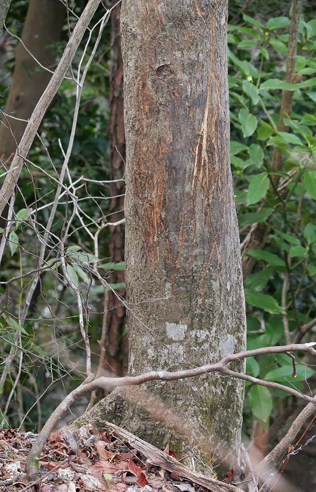 赤丸で囲んだ所ともう一ヶ所の枝が切られた(2017年撮影)