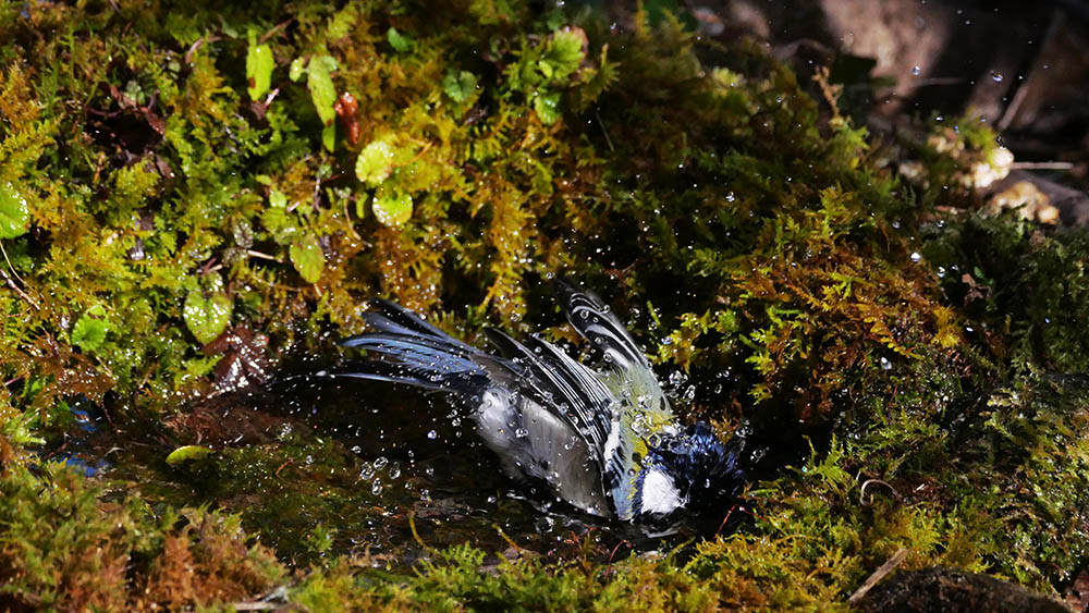 ヤマガラの水浴びは大人しいけど、この子は違う
