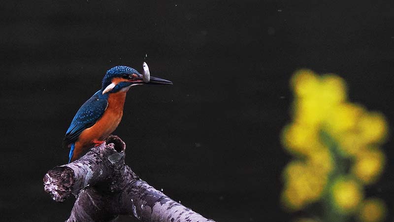 菜の花が多く咲く様になった河原では、ヤマセミがオイカワをゲット。