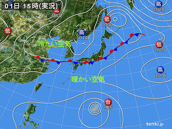 8月下旬まで太平洋高気圧に覆われており、エゾビタキは大分に到着しないと判断していました。9月1日~2日、小笠原暖気団が退いてシベリア寒気団が九州まで届くようになり、時期的にエゾビタキが来れる、冷たく乾いた空気に包まれていました。