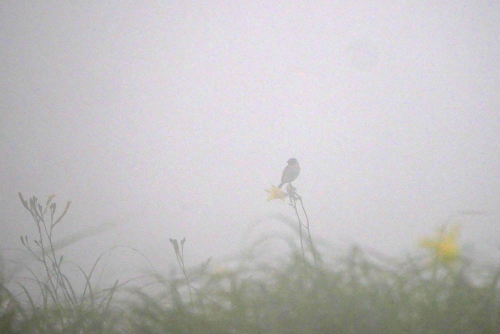 霧がなければユウスゲコジュリンの♀が鳴くショットも綺麗に撮れたハズ。今回は霧に包まれた写真しか撮れませんでしたが、7時過ぎにこの地を後にしました。