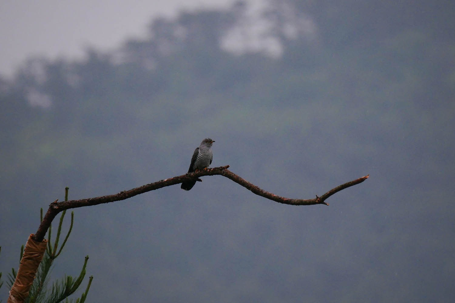 セグロカッコウは木の中に止まる事が多いらしく、カッコウみたいに簡単ではない。